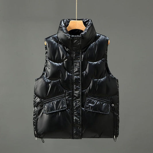 Quilted Puffer Vest with Button Closure for Women - Melissa