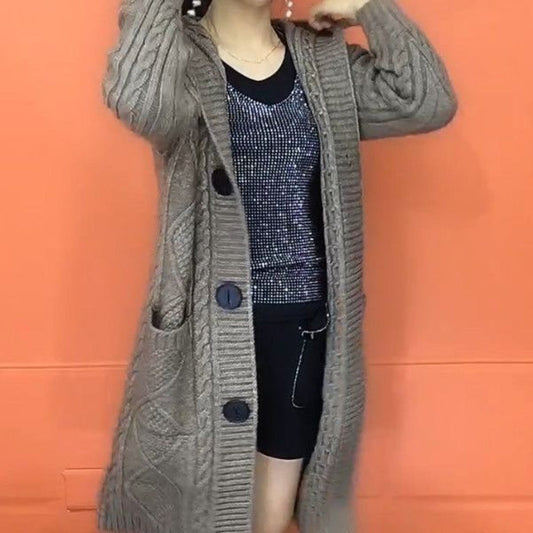 Cable Knit Hooded Sweater Coat with Pockets for Women - Fiorella