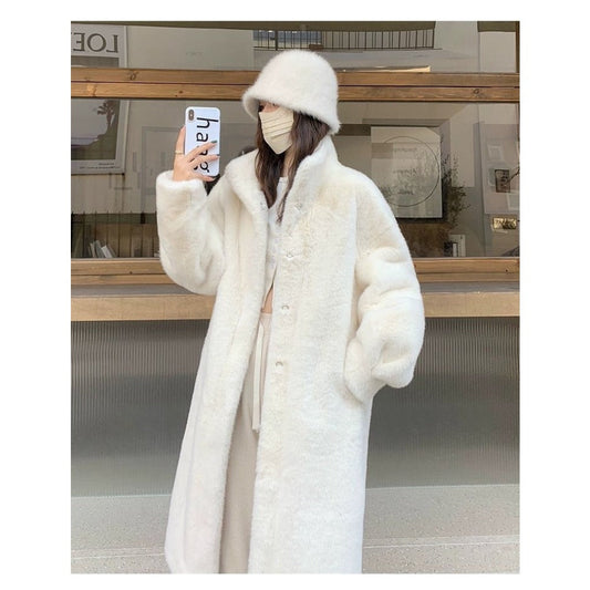 Long Overcoat with Faux Fur Cuffs for Women - Fortunata