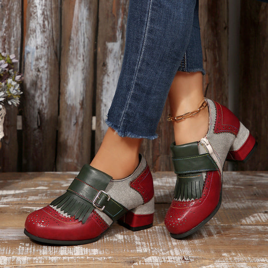 Retro ethnic style pointed toe thick heel lace-up embroidered Martin boots