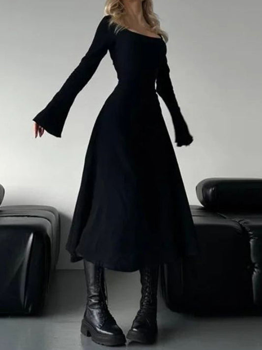 Einfarbiges Y2k Langes Abendkleid mit Langen Ärmeln und Schmaler Passform