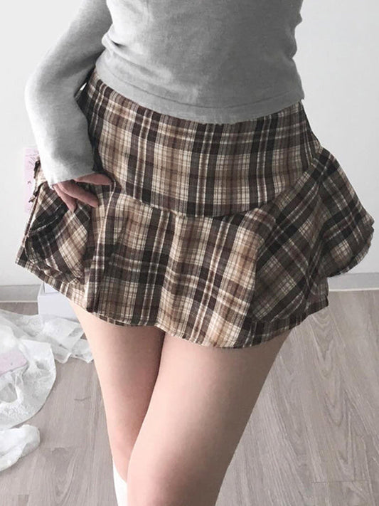Braune Vintage Kontrast Karo Miniröcke