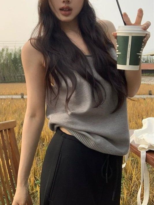 Einfarbiges Vintage Strick Rückenfreies Camisole