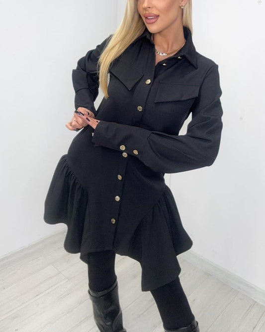 Kleid Reverskragen Puffärmel Halb-Reißverschluss