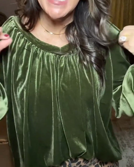 Top dezenter Glanz V-Ausschnitt langärmlig