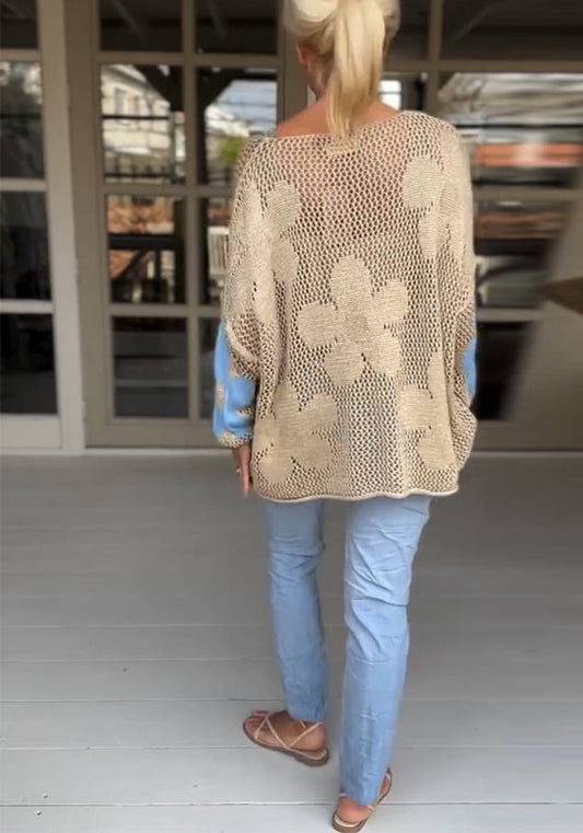 Floral print blouse with mesh neckline and V-neck