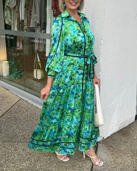 Elegant printed dress with lapel straps