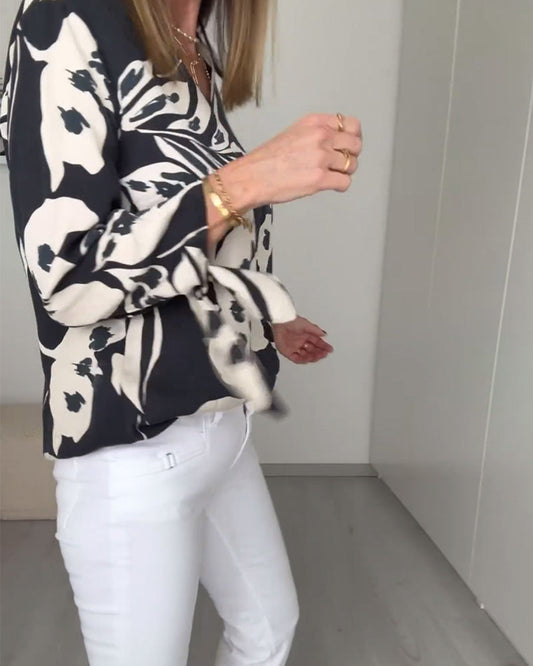 Printed v-neck temperament blouse