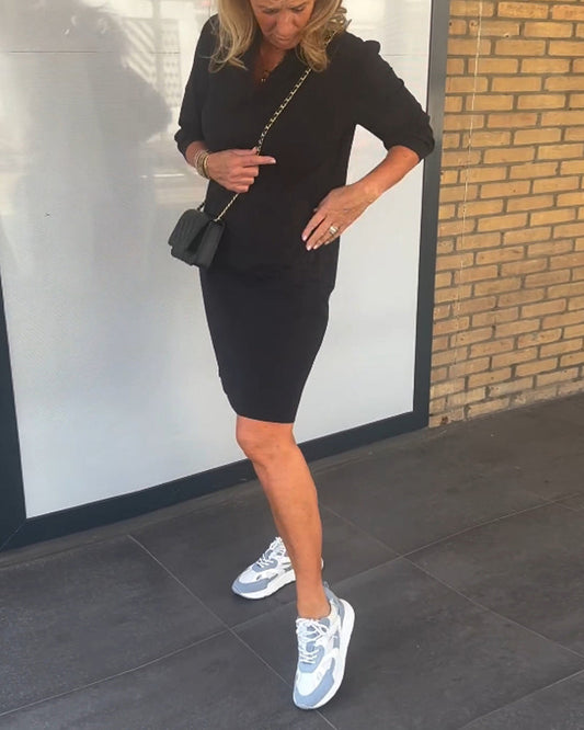 Casual dress with solid color and three-quarter sleeves