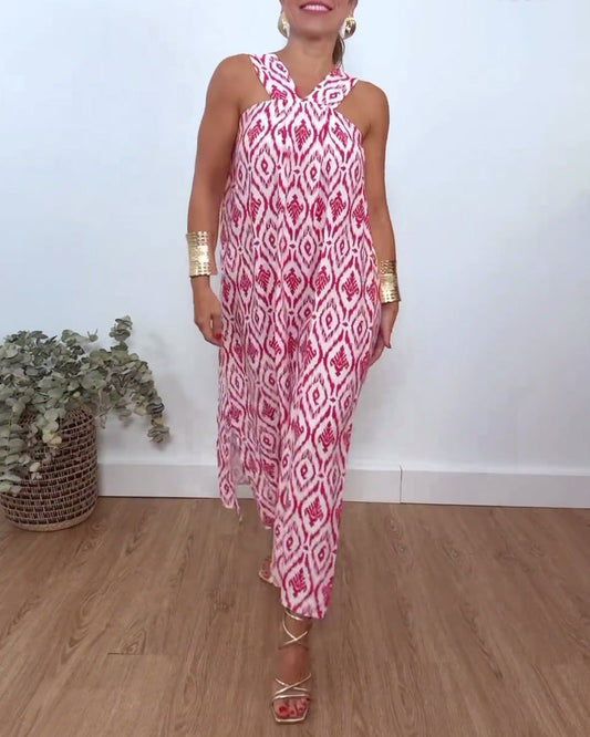 Printed sleeveless casual dress with slit