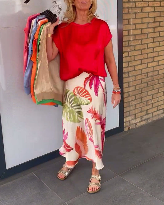 Elegant pleated skirt with colorful floral print