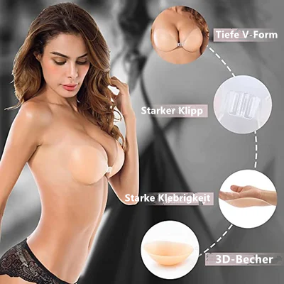 ✅ Fascinating Deep "V" Bra: The sticky bra is a deep V-shaped design that helps to push your breast and just pull a little, it will give you a full and sexy cleavage. It is better to show your beautiful breast curve, making you the focus of everyone.