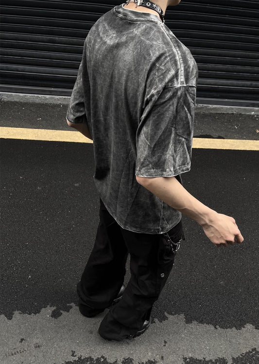 Vintage Oversized Washed Print Short Sleeve Top