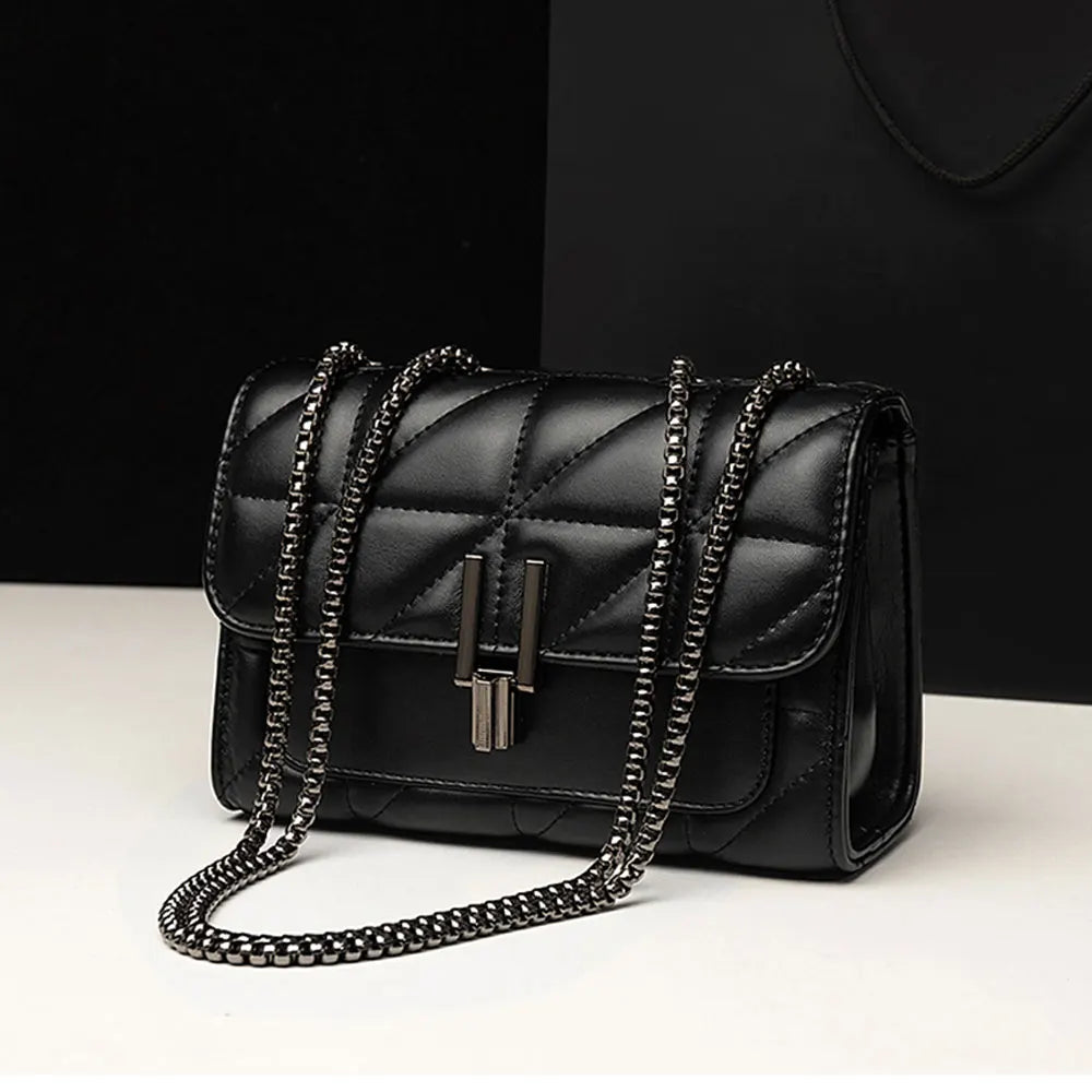 Elegance with a touch of edge. The bag features a quilted finish and distinctive chain straps that add a touch of sophistication and modern flair. It's the ideal choice for both formal occasions and everyday use.