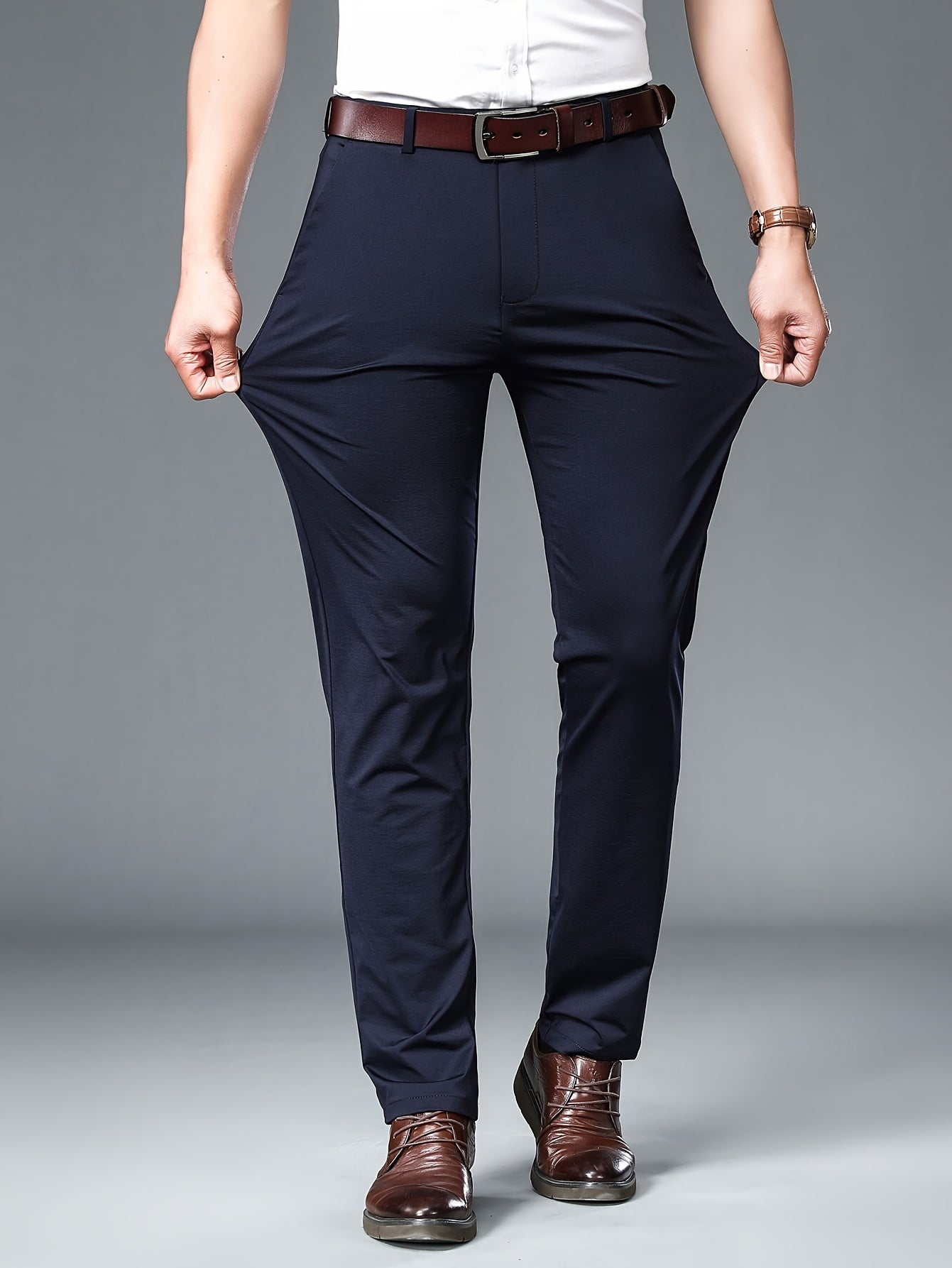 Upgrade your everyday look with these navy blue casual pants. These pants are ideal for men who prefer a smart yet comfortable style. Perfect for everyday wear or formal occasions, these casual pants offer the perfect blend of comfort and fashionable design.