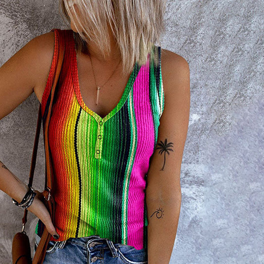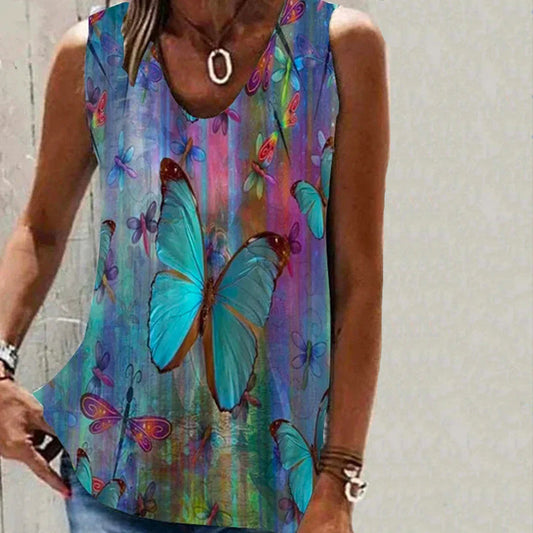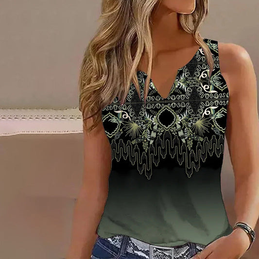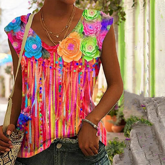 【100% Algodón】Camiseta sin mangas informal con estampado natural.