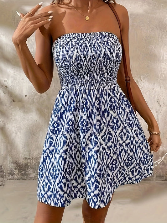 Colorful strapless summer dress with pattern - Clara