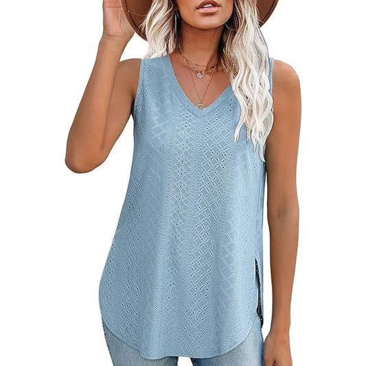 Clara - Sky blue lace tank top