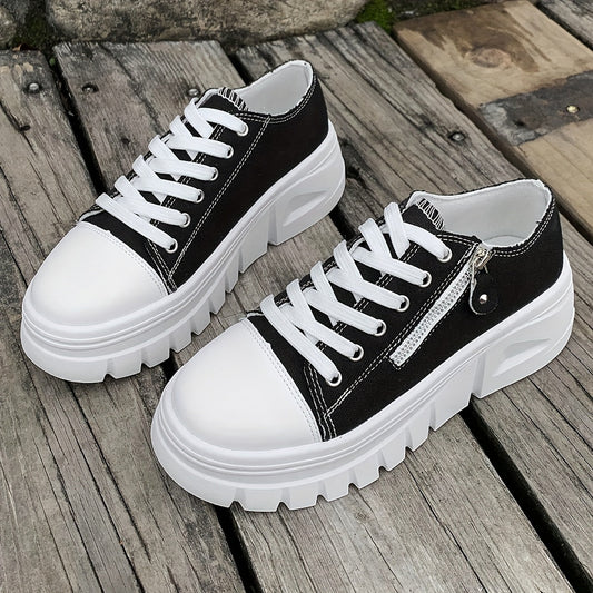 Black and White Chunky Zipper Sneaker - Ava