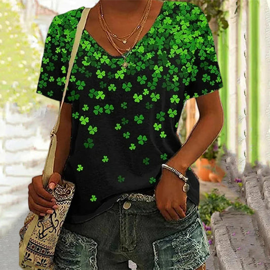En venteT-shirt décontracté imprimé trèfle