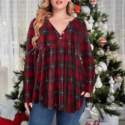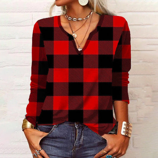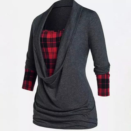 Blouse patchwork décontractée à carreaux