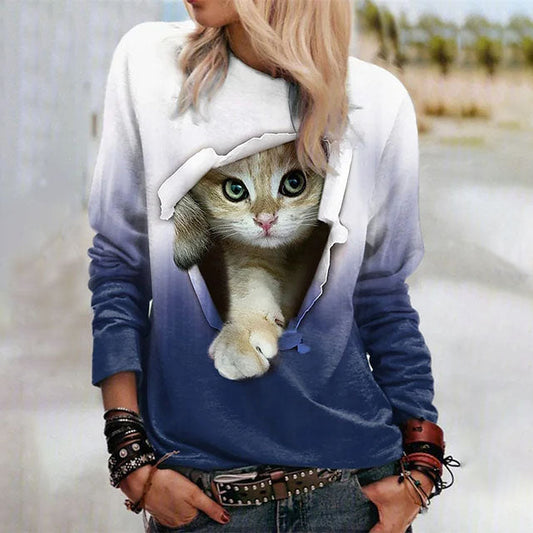 Sweat-shirt décontracté à imprimé chat