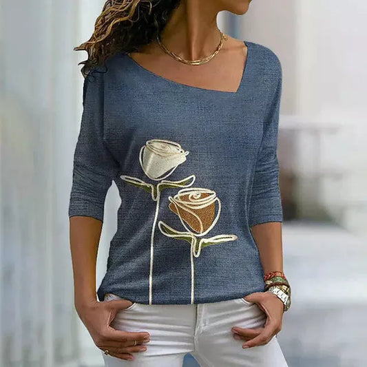 En venteT-shirt décontracté à imprimé roses