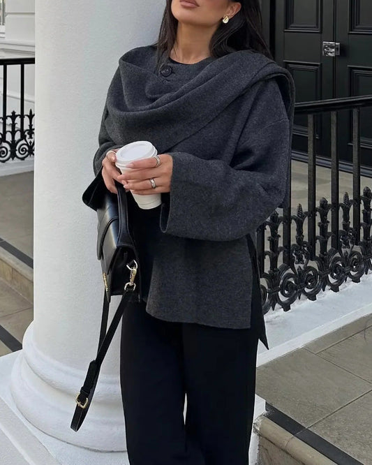 Parisian Boulevard Asymmetric scarf cropped knitted jacket