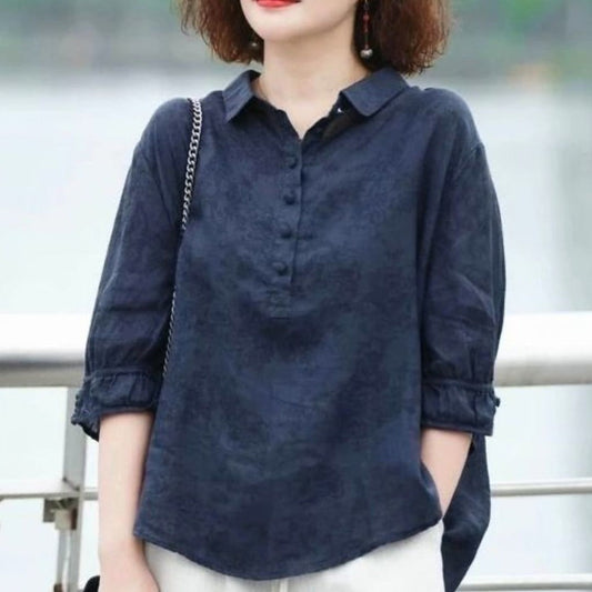 Half Sleeve Linen Blouse for Women - Lelia