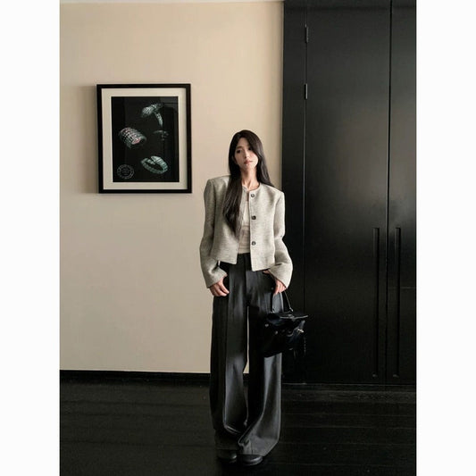 Grey Button Front Cropped Blazer Jacket for Women - Silvia