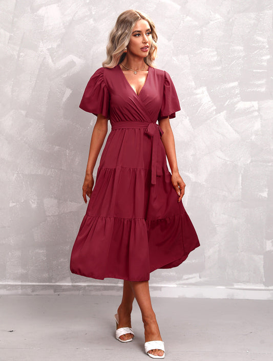 Robe midi rouge foncé à volants