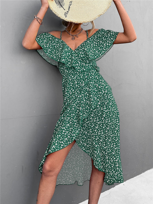 Robe midi épaules dénudées verte à imprimé fleuri