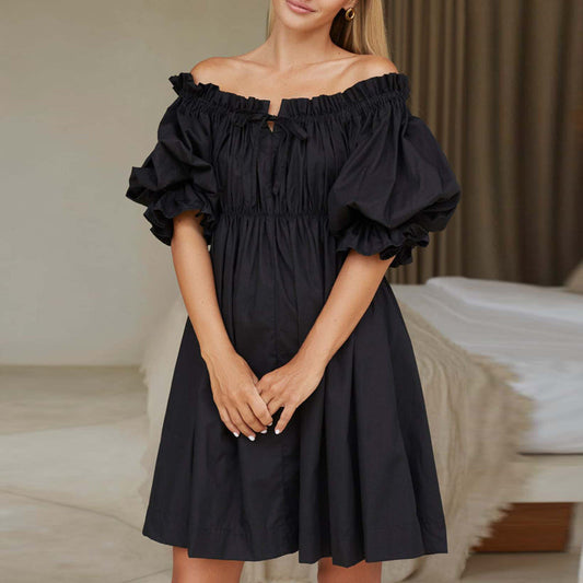 Robe noire épaules dénudées à manches bouffantes