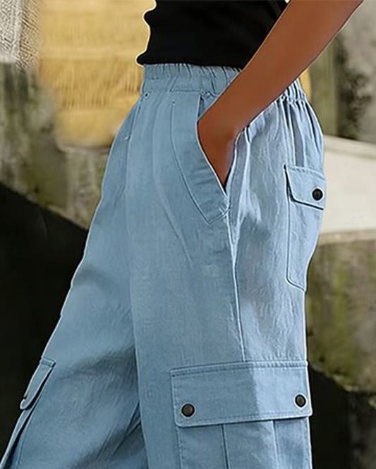 Freizeithose in Unifarbe mit Taschen und elastischem Bund