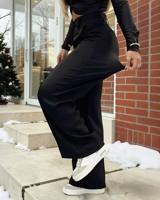 Hose Damen Casual Hoch Tailliert Weites Bein