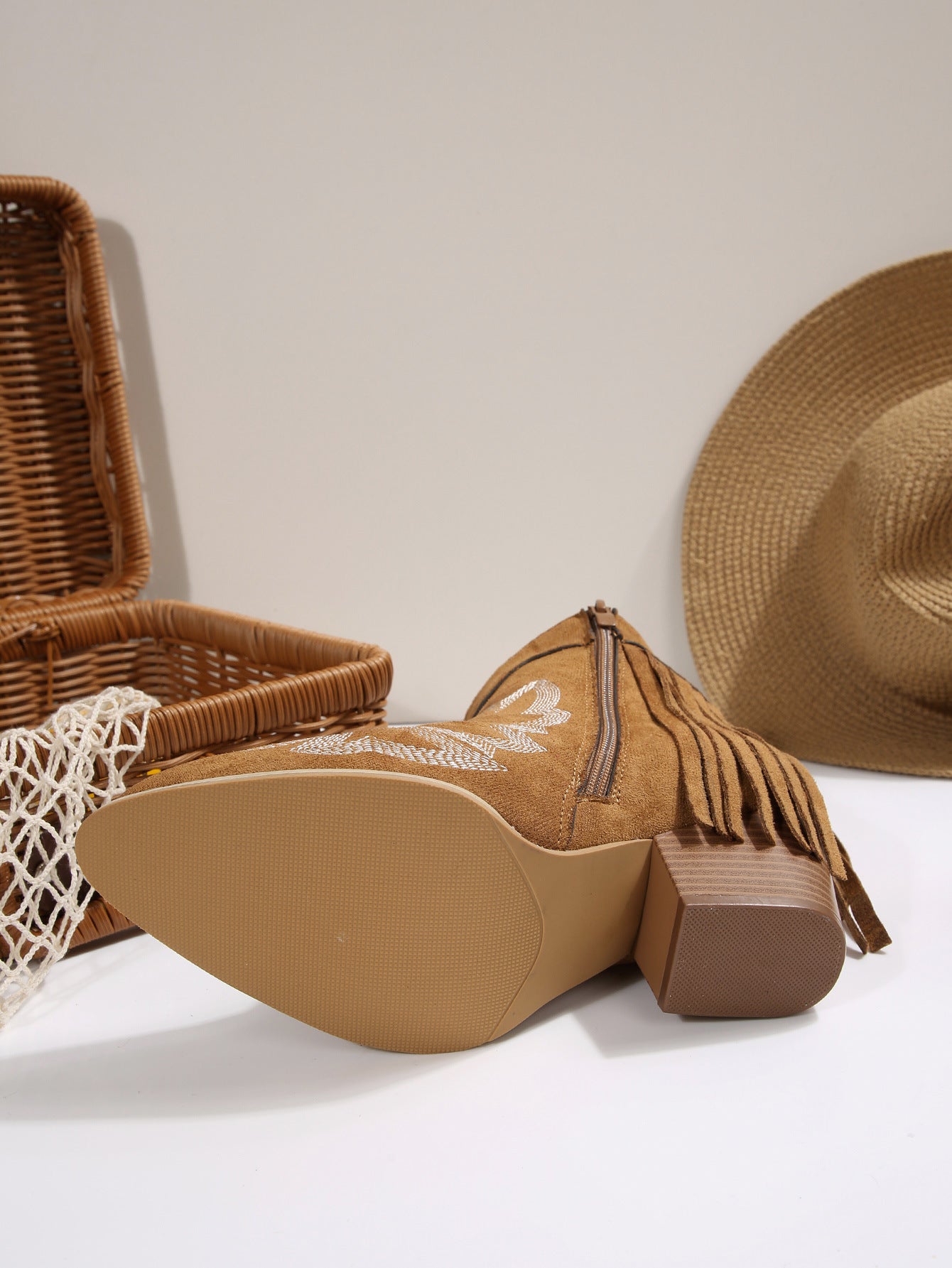 Equestrian Line Tassel side zipper embroidered ankle boots