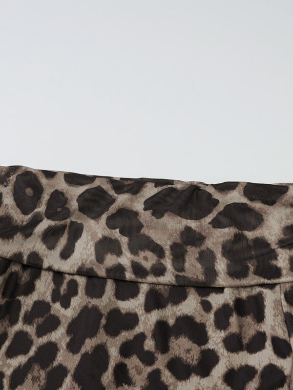 Trendy Y2K leopard pattern: Step into the spotlight with this striking long-sleeved shirt featuring a bold leopard print and a sleek one-shoulder design. Perfect for evoking early 2000s nostalgia, this top will add a wild and fashionable look to your outfit.