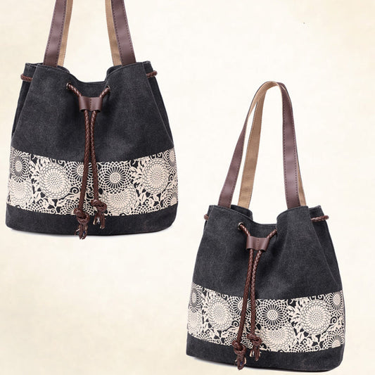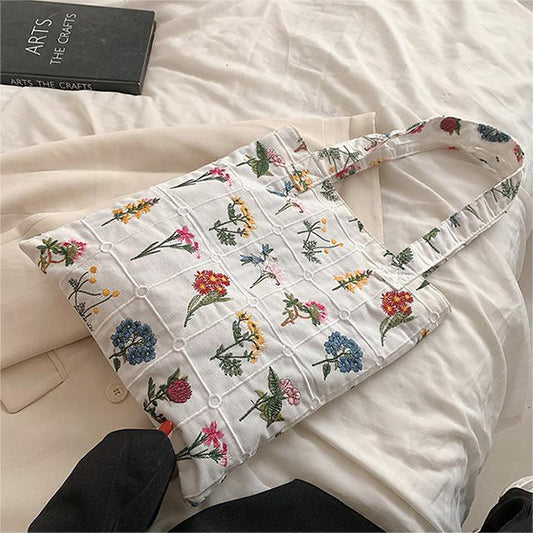 In offertaTasche Aus Segeltuch Mit Blumenstickerei