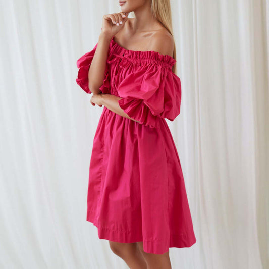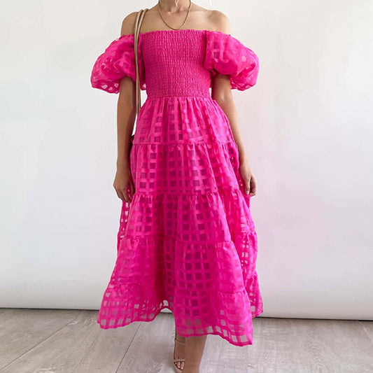 Rosa Off-Shoulder Kleid mit Puffärmeln