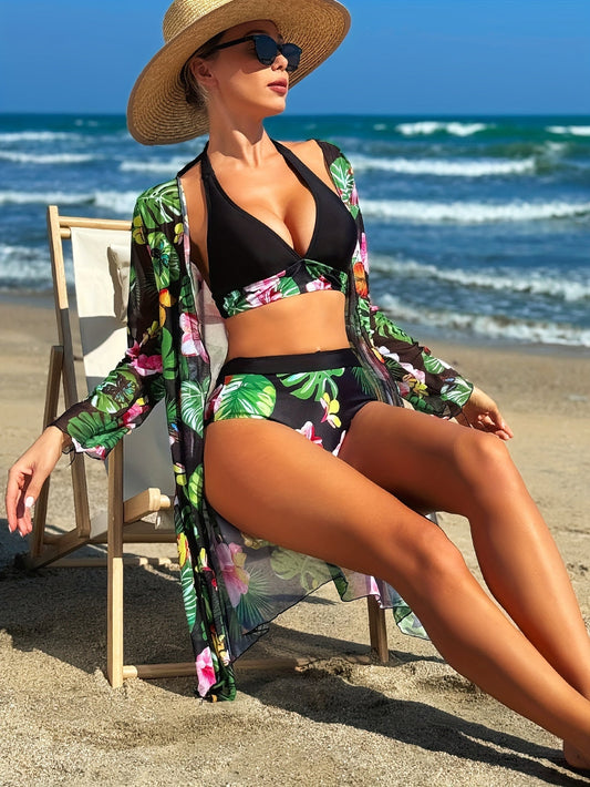 Schwarzer Badeanzug Set mit Blumendruck - Lara