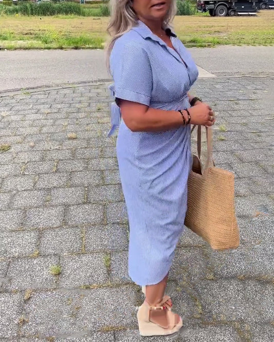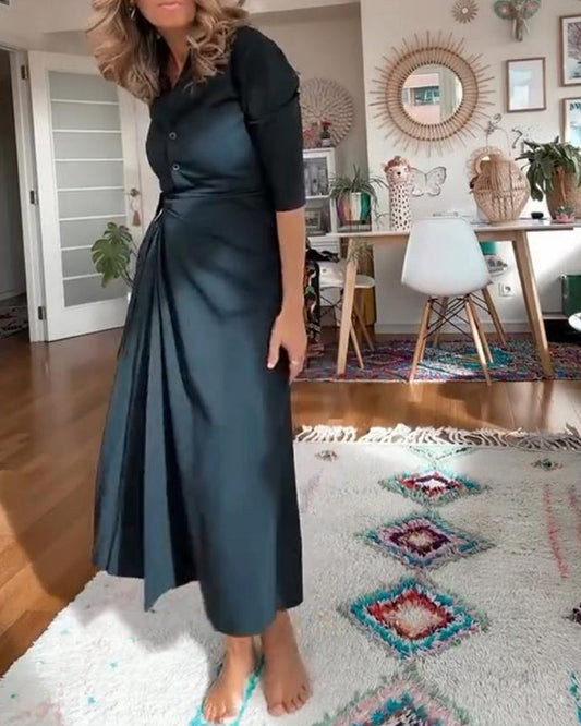 Løs, plissert kjole med V-hals