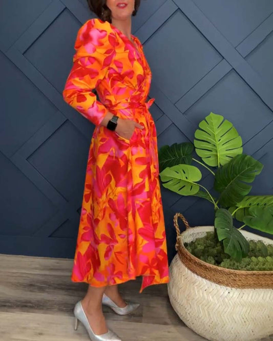 Uformell V-hals kjole med blomstertrykk