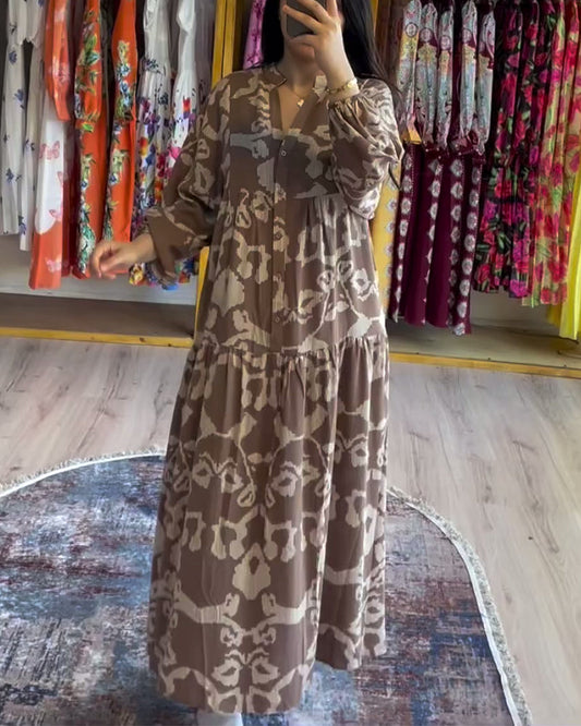 Løs kjole med trykt knappestolpe