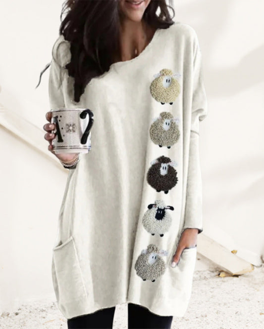 Løs lammegenser med rund hals