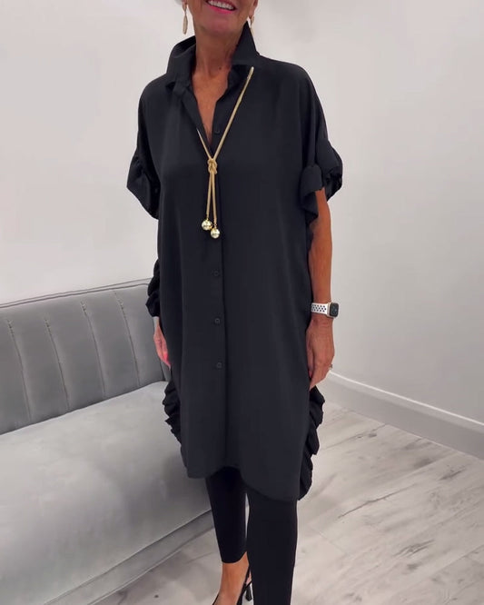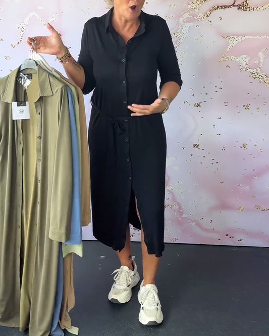 Enkel ensfarget casual skjortekjole med jakkeslag