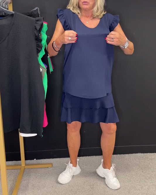Enkel todelt dress med volanger i ensfarget