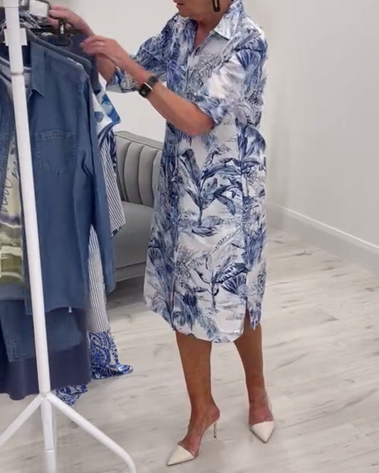 Kjole med botanisk trykk og jakkeslag