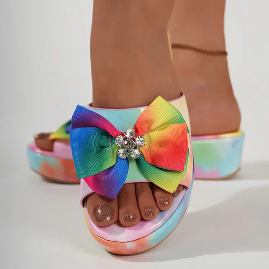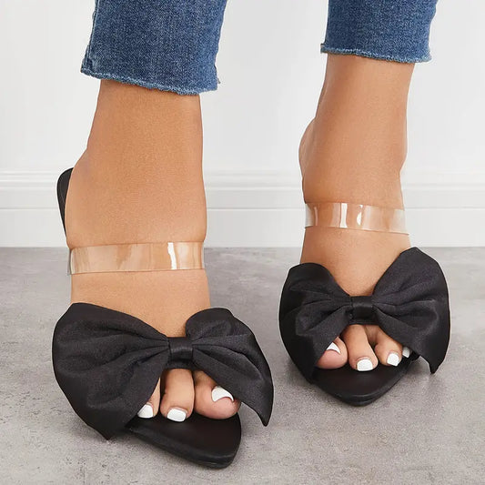 Dina- Glitrende og sløyfedekorerte glidesandaler for kvinner