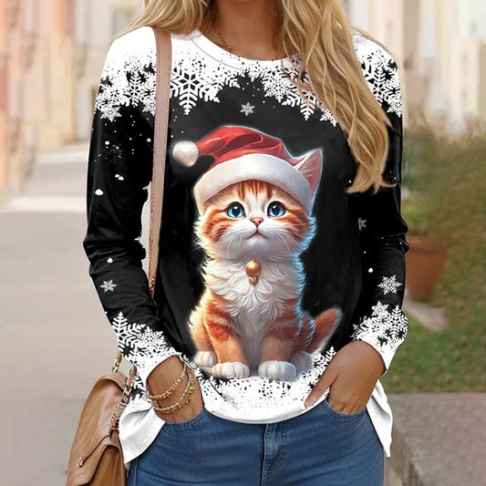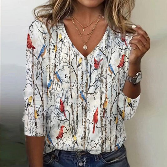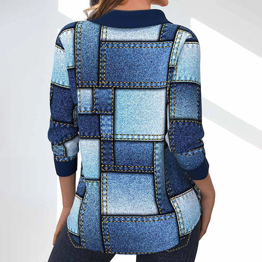 【Bomull og lin】 Uformell bluse med tusenfrydtrykk