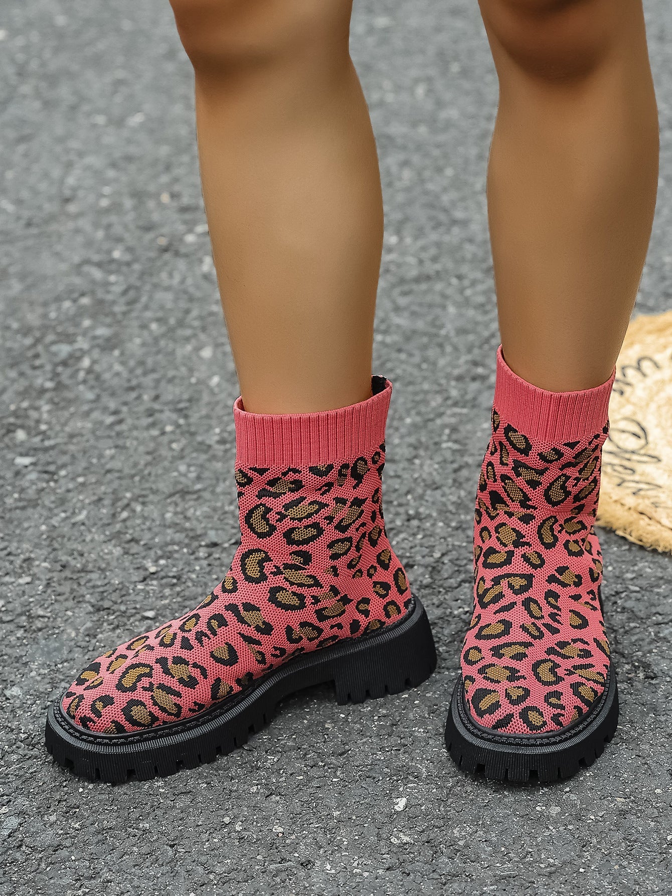 Under the Neon Leopard knitted sock boots